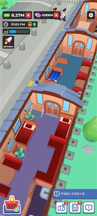 3、升级系统是这类游戏的灵魂。钱赚够了就能给火车来个大翻新。想提升档次?加盖豪华客房;想多赚钱?增加餐饮种类;想留住高端客户?把观景台搞得漂亮点。持续砸钱升级,酒店品质上去了,客人自然就多了。