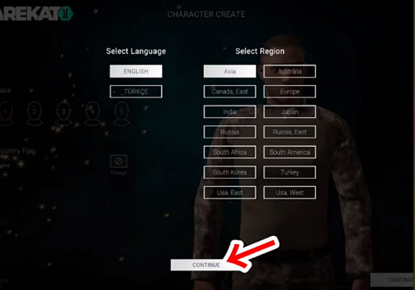 1、进入游戏后,首先选择你喜欢的角色形象,然后在右下角输入名字后点击CONTINUE。