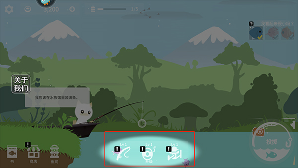 5、升级装备要花金币,这玩意儿就得靠你多钓鱼去攒。肝就完事了。
