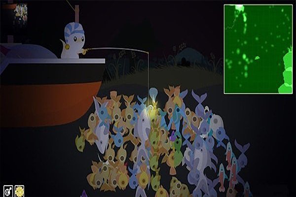 3、鱼咬钩之后,把它拖进旁边的渔网里就算到手了。