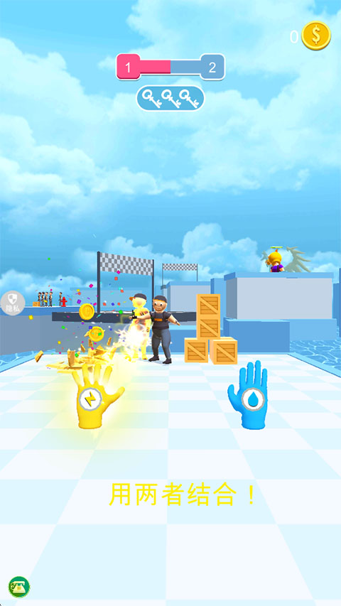 这游戏的核心卖点就是“解压”。敌人跟潮水一样一波波涌过来,你就在那挥挥手套,看着满屏幕的敌人瞬间蒸发,那感觉确实到位。操作简单粗暴,配合上花里胡哨的元素特效,视觉上和手感上都挺爽的。