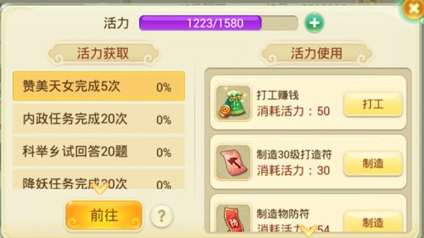 活力:搞生活技能,比如炼药、烹饪啥的,就要消耗活力。你每天做日常任务拿到活跃度,活力就会自动恢复。