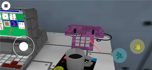 3、操控角色走到书桌前,将屏幕中央光标对准账单,点击手形图标查看详情;