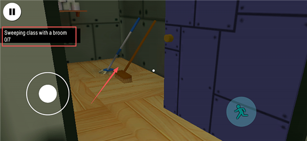 9、根据左上角任务指示,前往房间内领取工具,按提示完成后续清洁任务。