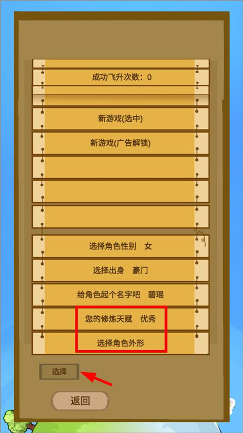 3、输完名字,接下来是重头戏,选你的修炼天赋和角色外观。虽然是文字游戏,但这个仪式感必须到位。