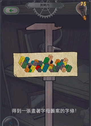 5、 回到S区,点一下盆栽,能发现“7-5”这两个数字。然后再去E区,调查柜子左边,点那把尺子,把它调到7-5的刻度,会得到一张写着字母的纸条,上面是SAEK。这时候再回到S区,点桌子最下面的密码抽屉,把SAEK(记得大写)输进去,就能拿到时钟的分针了。
