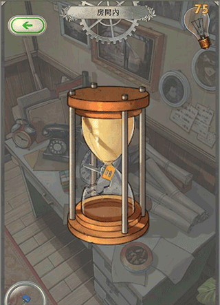 6、 还是在S区的桌子上,有个沙漏,点一下它,然后把你的手机整个倒过来,就会出现一把黄色的钥匙。把沙漏敲碎,就能拿到这把黄色钥匙了。