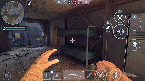 2、游戏画面高度还原二战战场实景,收录多款经典二战武器,玩家可化身战场士兵,与全球玩家实时展开激烈枪战。