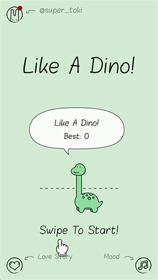 像小恐龙一样是一款跟着音乐玩的小恐龙游戏,进入游戏后玩家是跟着节奏左右移动,让小恐龙去吃东西,吃得越多脖子就会越长,分数也会越高,玩法很简单,不用学很久就会玩,然后音乐也是蛮多的,边听边玩很放松,也有一点点挑战,游戏是那种轻松又有节奏感的小游戏。