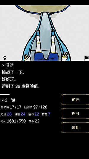 6、游戏里大部分时候就两个选项,“前进”或者“返回”。比如下面这张图,遇到个滑梯,你可以选滑下去或者啥也不干。
