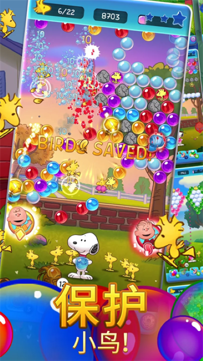 官方说有800多个关卡,而且还在加。我刚上手实测,前期的关卡就是凑颜色消除。打到一百关之后,难度明显上来了,各种泡泡混杂在一起,需要考虑发射顺序。后面几百关还有障碍物挡路,或者限时挑战,对手速有一定要求。这数量足够你玩到天荒地老了,史努比能从头陪你到尾。