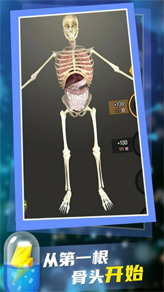 1、进入游戏后,从细胞开始一步步养成人体结构;