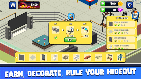 4、除了打斗还可以打造自己的房间,安装基础设施给房间更饱满,多种玩法充满新鲜感。