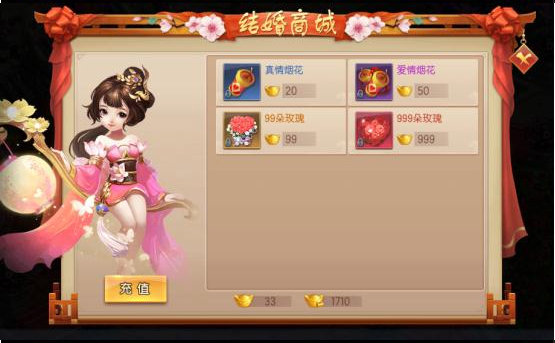 13. 爱情宝匣。夫妻双方可以互相给对方买这个宝匣,买了之后俩人每天上线都能领一大笔绑定元宝;