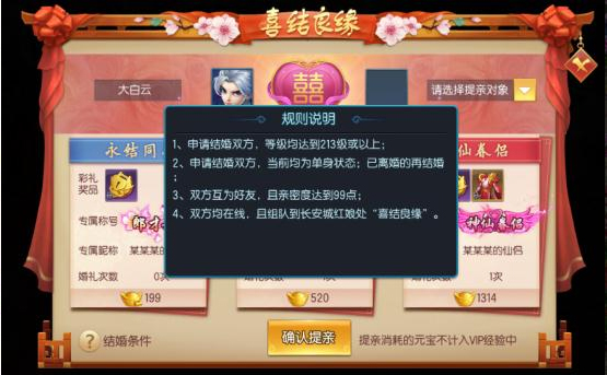 5. 想结婚的那一方,先在红娘那儿买个彩礼去提亲,对方要是点了同意,这事儿就算成了,你们就成了仙侣;