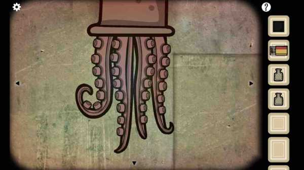 2、输入密码后,桌上会冒出章鱼须。这里的目标是让所有吸盘都凸出来。规则是:你点哪个触手,它自己会凸起两个吸盘,旁边的触手各凸起一个。搞定后用墨水瓶去接汁。