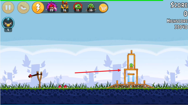 1、第一关纯属白给,开局给你三只鸟,绰绰有余。大家看下面这张截图,就照着我截图里木板对角线那个位置打,一发过去保证三星。