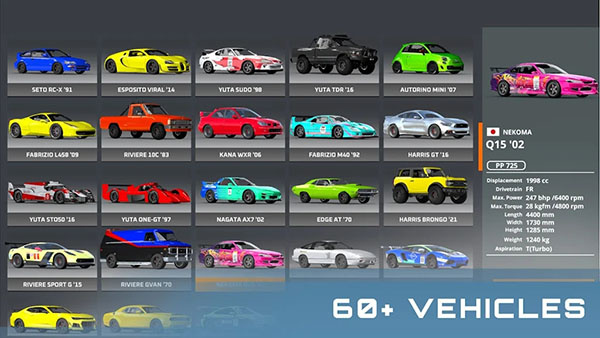 1、可以选择六十辆的跑车来进行赛跑,每个车子的性能都不同;