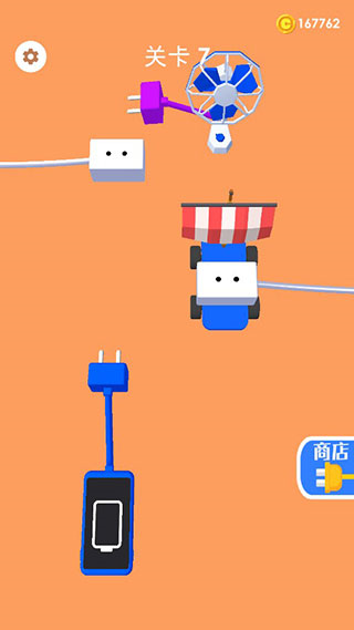1、这游戏的玩法有点新意思, 手指点点划划, 有时候还得自己动手改装插头。不过改装工具不是白给的, 需要你花游戏里赚的金币去买。买了合适的工具, 才能帮你搞定一些特殊的关卡, 比如给那些颜色不同的手机分别充上电。