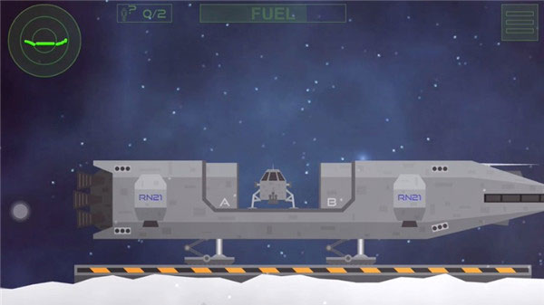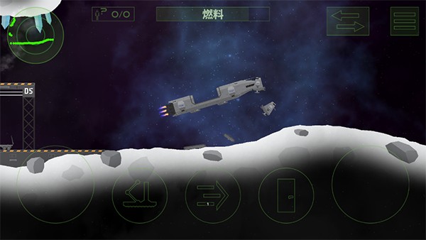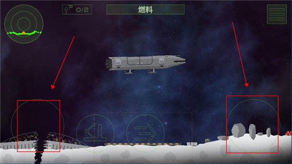 1、操作逻辑很简单,屏幕左右俩键就是飞船的推进器。关键是得精细控制,保持平衡,不然降落就炸了。