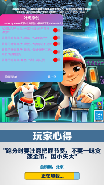 名称:地铁跑酷空间站叶烸原创内置菜单