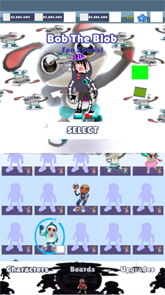 - 金币攒够了就能去商店买新角色,还能升级他们的能力。每个角色都有自己的特殊技能,比如加速跑或者金币翻倍之类的,对刷分有帮助。大家看下面这张截图,角色选择还挺多的。