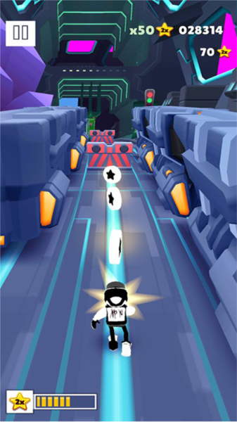 - 这哥们儿把整个游戏的画风都给魔改了,从背景到人物都换了层科幻皮。讲真,地铁轨道和金币的视觉效果做得挺带感,地图跑起来比原版花哨不少,观赏性确实上去了。