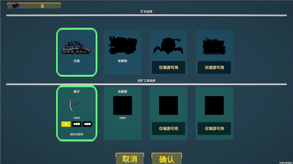 1、进入游戏内,选择你的矿车以及挖掘工具