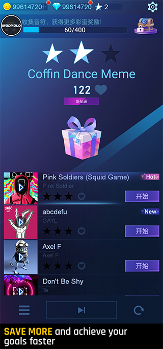 2、选择喜欢的音乐曲目进入,不同曲目节奏与难度各不相同。