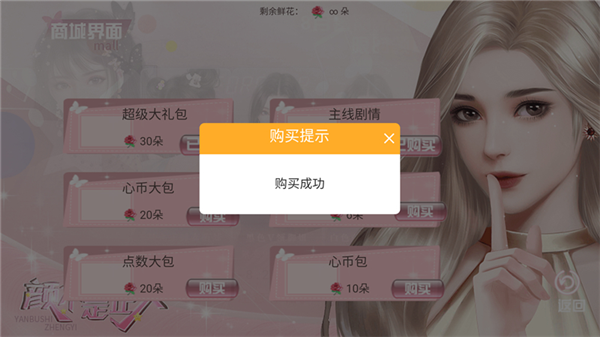 3、这个版本的好处就是不用氪金,鲜花直接拉满。你可以直接进商城,那个超级大礼包、主线剧情包、心币大包什么的,随便点,直接拿下。