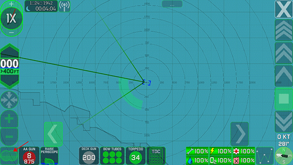 5、看到截图里左下角那个方向舵标志没,点一下就能让潜艇动起来,开始巡航。