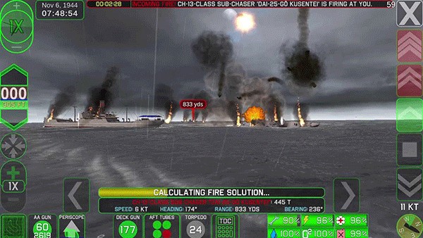 背景设定在二战,你扮演的是德军U艇的指挥官,在大西洋上跟盟军舰队斗智斗勇。任务花样还挺多,不只是单纯地把对面打沉,还得干些运输武器鱼雷的脏活累活。夜间偷袭这种经典战术也给你安排上了,甚至可以设陷阱阴人。打赢了奖励给得挺大方,用来升级潜艇正好,可玩性这块儿拿捏得死死的。讲真,这代还加了子弹爆炸和误伤队友的设定,连炮弹碰撞反弹都做出来了,给战斗添了不少变数。