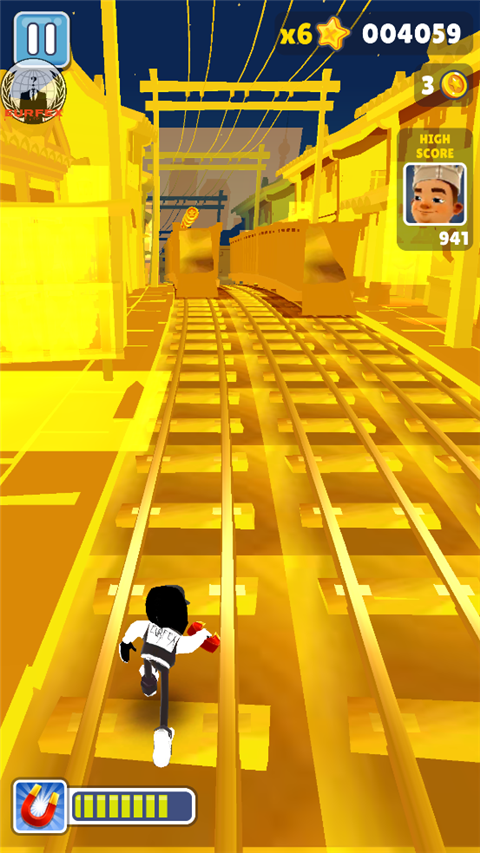 跑过洛阳的街头巷尾吗?地铁跑酷黄金洛阳版本这次让你在金色的古都里尽情撒欢!从龙门石窟跑到白马寺,满眼都是金灿灿的华丽场景。这不只是简单的跑酷,更像一场穿越时空的潮流旅行。经典的角色们也都换上了限定行头,挑个你最顺眼的,在古韵与潮流碰撞的赛道上,秀出你的极限操作,看看谁才是洛阳城里最靓的仔!