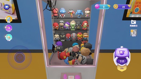 有一说一,这投币的环节做得还挺带感。不是让你在屏幕上随便点一下就完事,而是模拟了硬币掉进投币口的那个过程,还配了个清脆的“叮当”声。机器灯光一亮,爪子开始待命,那感觉,真有点街机厅那味儿了。