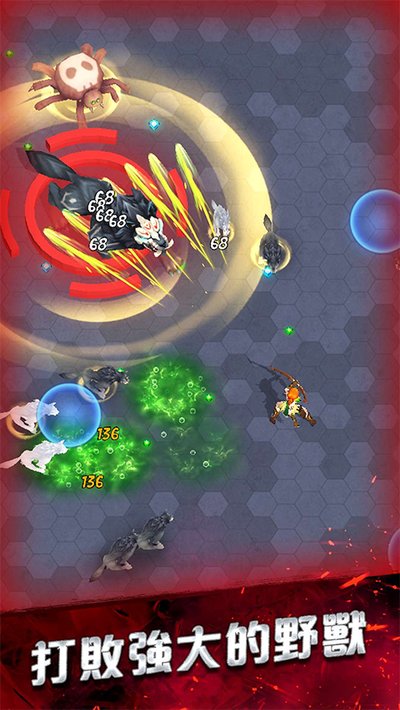 - 操作就是滑动屏幕控制走位,角色会自动攻击最近的敌人,让你能轻松地清理大批怪物,体验那种一个人就是一支军队的无双快感。