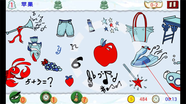 另一种是形容类的,比如让你找“能飞的东西”、“甜的东西”、“发光的东西”,这种就得动点脑子了。你得先看到一个东西,然后判断它符不符合这个描述。游戏画面是左右拖动的,所以你眼睛得扫得快,手也得点得快。没开玩笑。