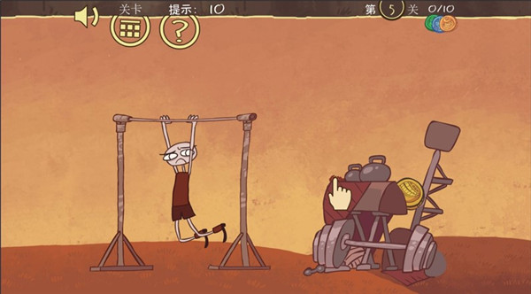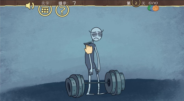 2.第二关,注意看主角背后,有个充气筒。先点那个筒子,再点杠铃,这关就算完事儿了。简单粗暴。
