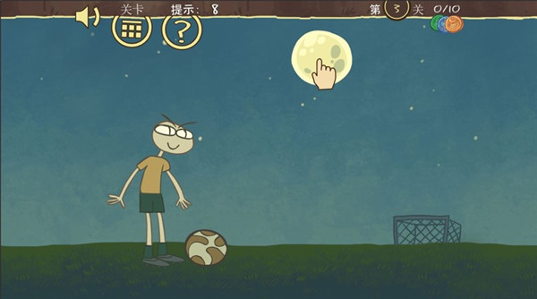 3.第三关这个脑洞就来了。别管地上那些东西,直接去点天上的月亮。等月亮掉下来砸地上,再点一下那个落下来的月亮,就通关了。