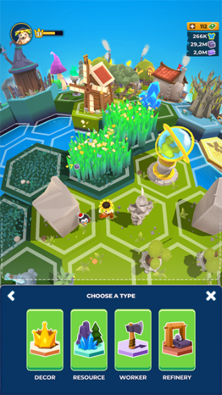 2、把拿到的资源丢在空余的地方就可以制造一片新的土地,这样就会长出更多的木材可以砍了;
