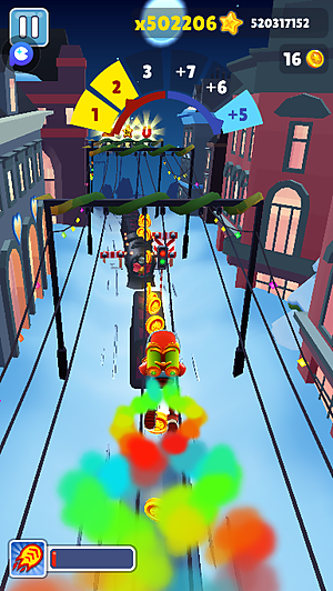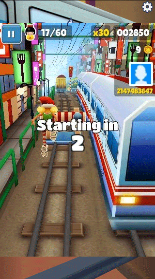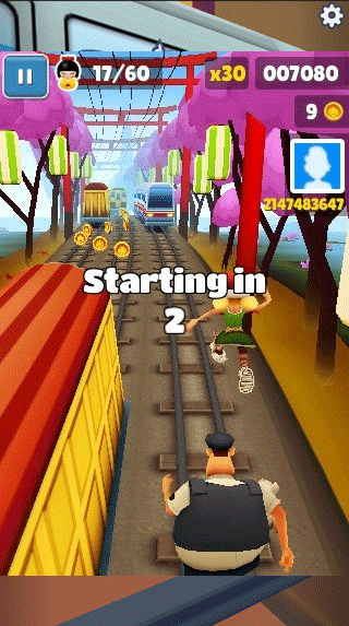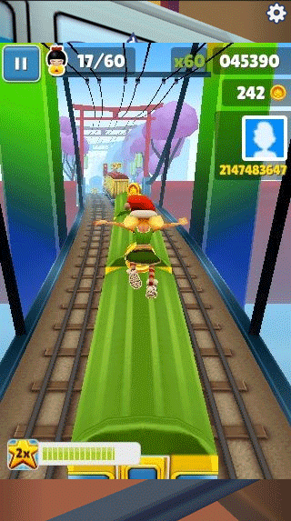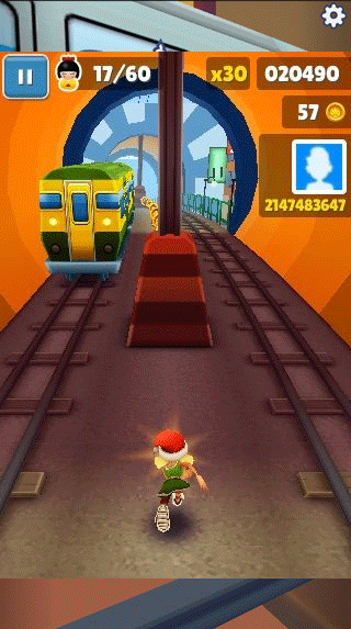 - 进了隧道就得精神紧张起来了,中间有柱子,两边还会随机来火车。讲真,前期过隧道跟玩儿一样,但分数跑到几十万之后,速度快得吓人,手指稍微慢半拍就直接撞墙。