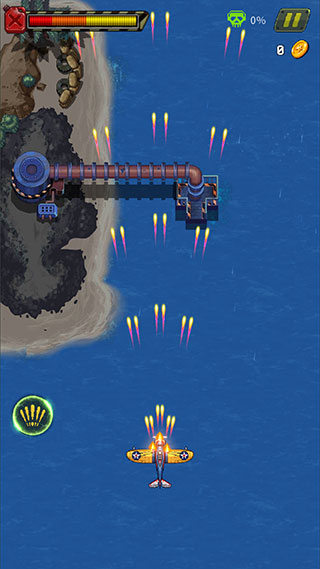 要是你玩腻了那些背景永远是黑漆漆宇宙的打飞机游戏,可以来试试这个。战斗场景都在地球上空,底下是蓝天白云、城市乡村,代入感强多了。竖版操作对单手玩家很友好,一只手就能掌控全局,带来了跟传统横版射击完全不同的飞行体验。