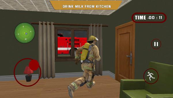 5、赶紧出发!得在时间跑完前冲到消防车那儿。结果我第一次玩,手忙脚乱,明显慢了半拍,淦!