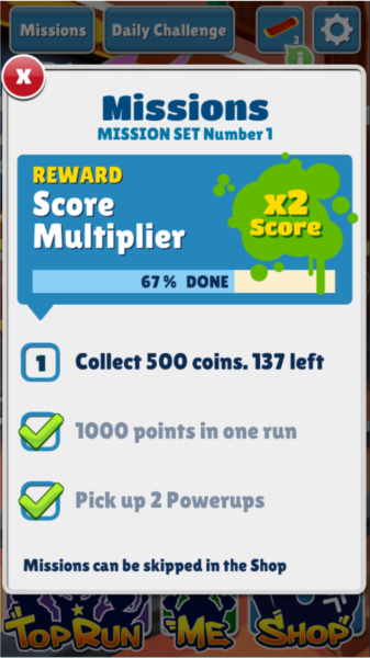 任务系统这块,除了跑酷和吃金币,游戏里还加了任务,让玩法不那么单调。