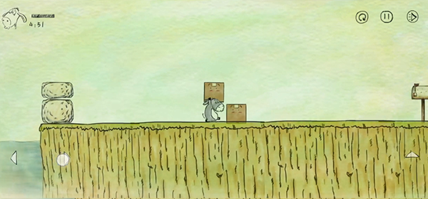 看下面这张截图,你得让驴子先往后拉,利用惯性把箱子甩出去,然后驴子自己跳过石头,最后再把箱子推到位。