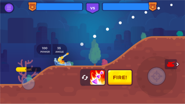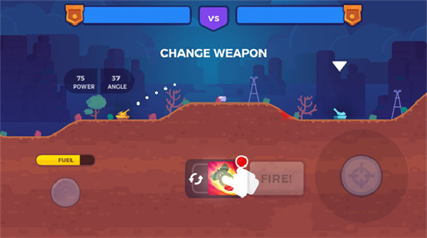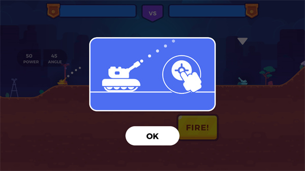 3、核心操作就是调整好角度和力度,把炮弹精准地砸到对面坦克头上。
