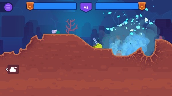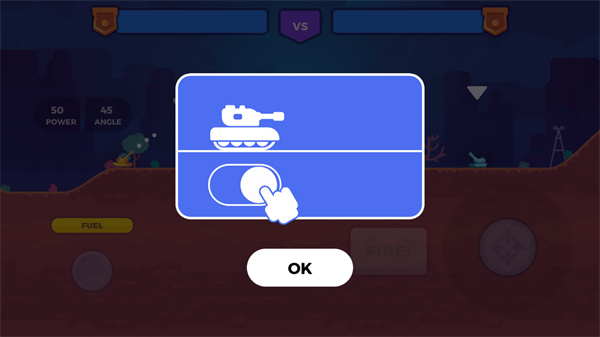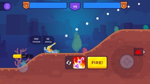 1、玩法非常直接,就是开炮或者用道具削减对面坦克的血量,谁先炸了谁就输,简单明了。