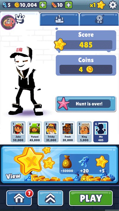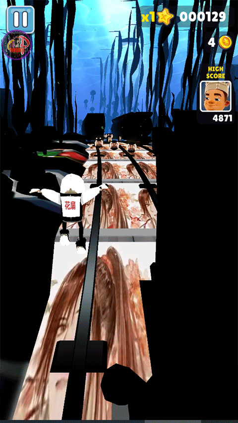 1.地铁跑酷花扇定制版本,说白了就是大神玩家基于原版游戏搞出来的一个“特供版”。刚上手实测,发现游戏里的场景画面和角色模型都跟原版不是一回事,进行了大刀阔斧的修改。地铁轨道和沿途的金币全都换成了玩家的专属头像皮肤,甚至连角色的背上和帽子上都刻着“花扇”的字样,看起来确实够独特,也挺抓人眼球的。在游戏里,咱们还是得控制角色一路狂奔,甩开后面紧追不舍的警察和他的狗。不过轨道上到处都是障碍物和迎面开来的火车,所以你得靠上滑跳跃、下滑翻滚、左右变道这些基本功来躲避危险。这游戏的逻辑很简单,你活得越久,分数自然就越高。