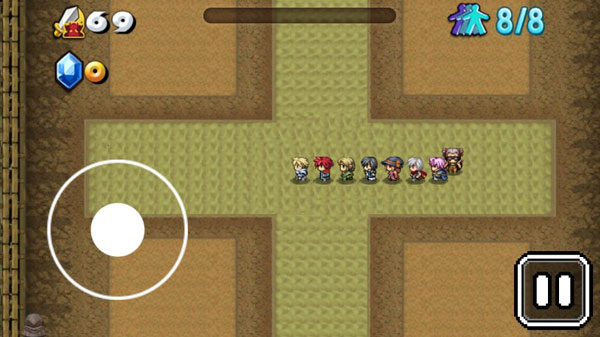 这游戏的核心玩法, 老玩家应该都秒懂。你控制最前头的那个英雄走位, 从怪物旁边蹭过去就算攻击, 但千万别一头撞上。干掉怪物有几率掉道具, 或者让你捡到新的队友, 队伍就越来越长。撑过一段时间就能进下一关, 每关的地图和怪都不一样, 记得随时看好自己的血条, 别浪过头了。