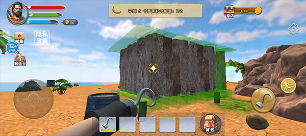 3、接着第二个任务来了,让你去砸个木桶。在海滩上溜达溜达就能找到,过去一顿敲,搞定。