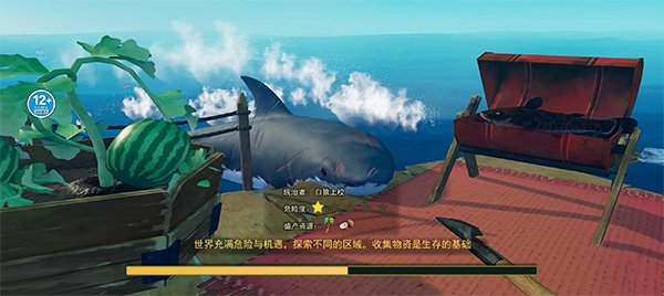 2、记住了,鲨鱼咬你船的时候会有“咔嚓咔嚓”的音效,一听到就赶紧过去。用你那根木矛捅它四下,它就老实了。别犹豫,那家伙啃木板贼快,十秒钟不到就能给你干废一块。